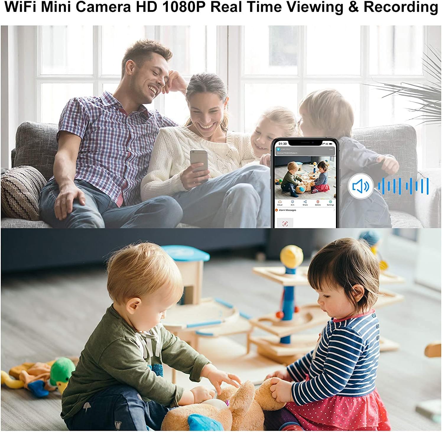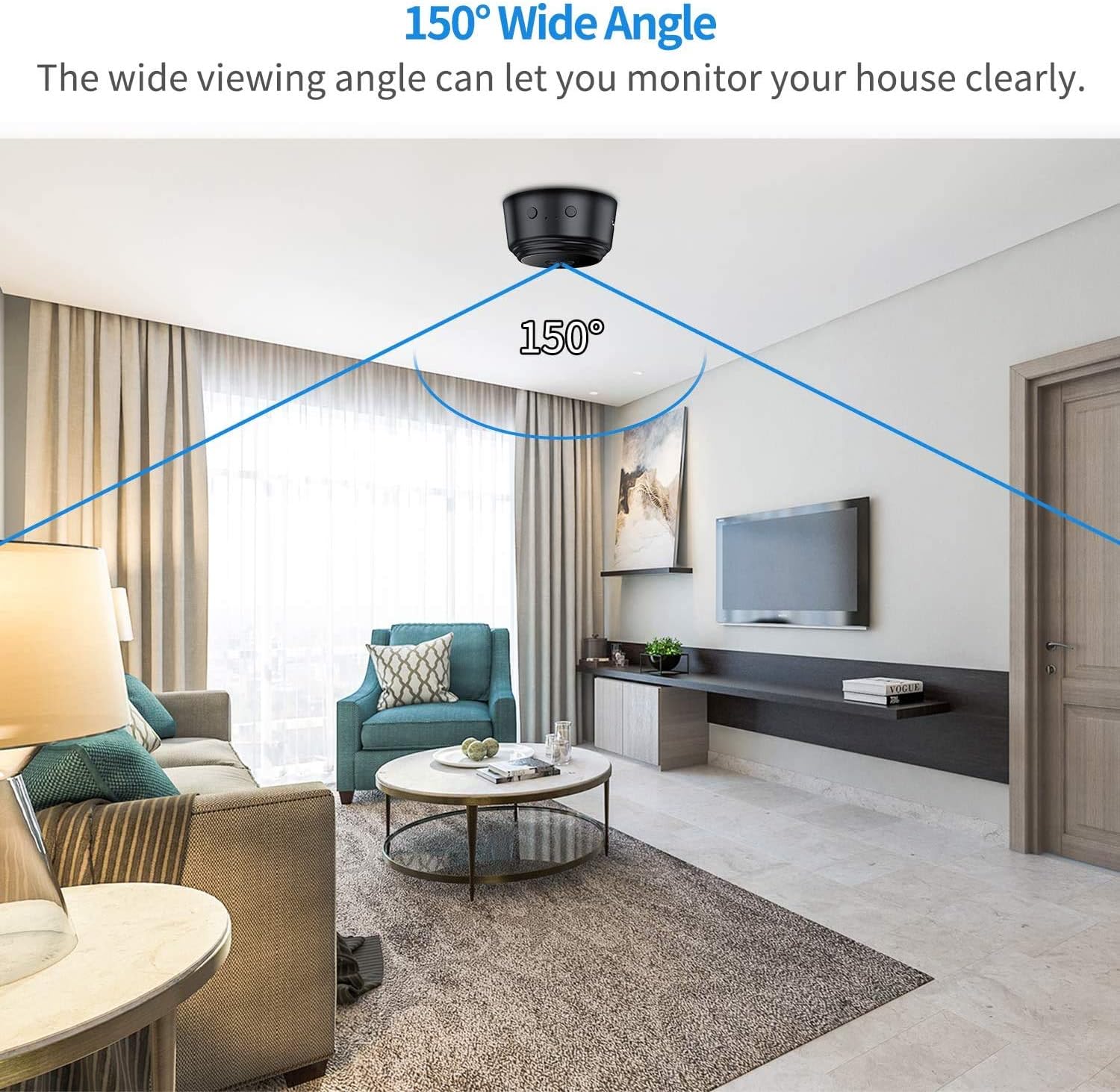 【Mini Cam with 150°Wide Angle] camera has a good performance in recording with ultra video resolution.allows you to faithfully reproduce every aspect of the scene with harmonious colors. The wifi nanny cam features covert design of 6 IR lights