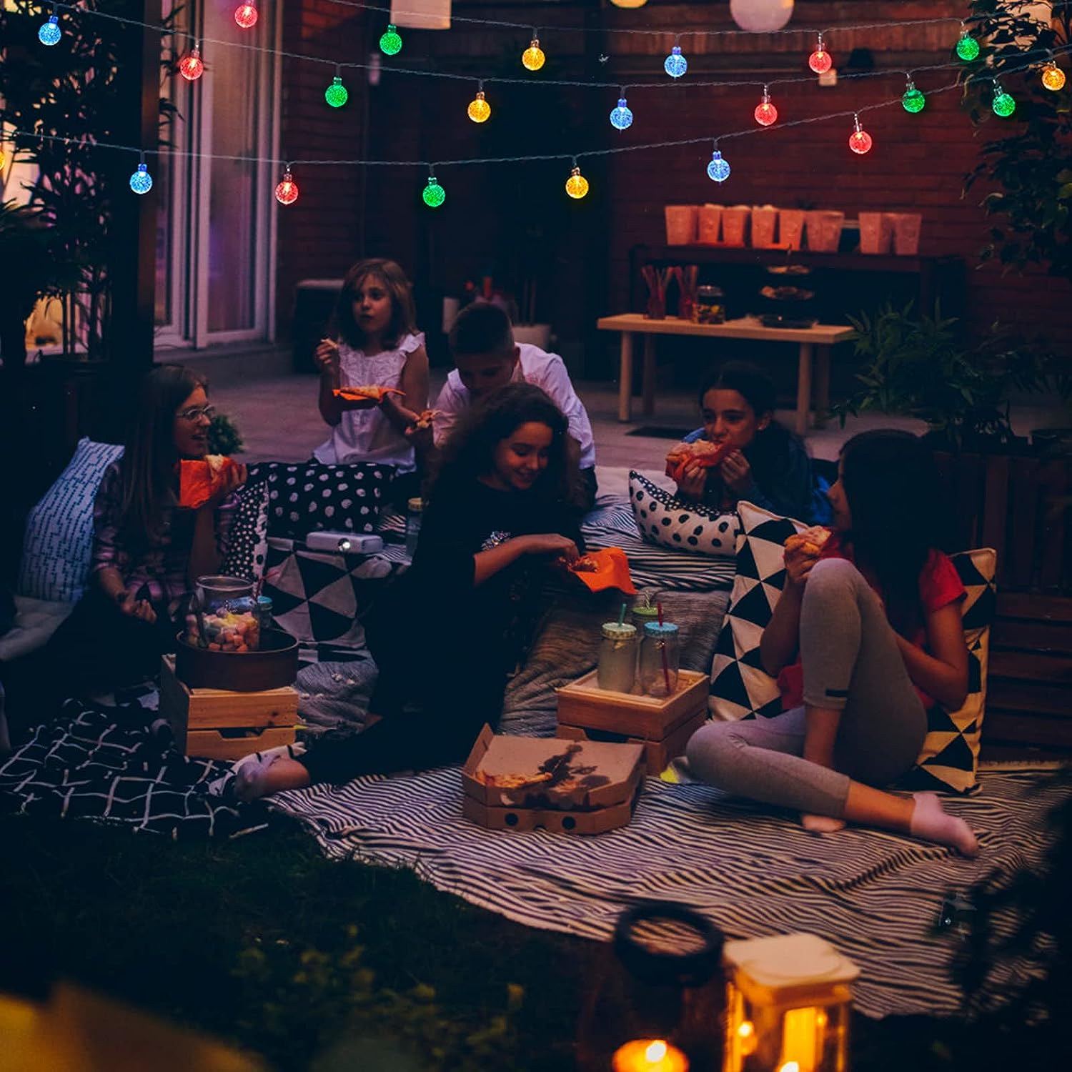 【Wide Application & Memory Function】The solar globe string lights with built-in memory chip save your last modes setting and no need to reset mode every day; Perfect decoration for terrace, pergola, bistro, backyard, deck, patio, garden, Christmas, holiday, wedding, party and other celebration occasions.