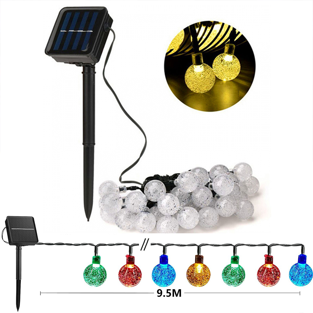 【Solar Powered & Auto On/Off】9.5M 50 LED Halloween string lights, solar energy supply, adjustable monocrystalline silicon solar panel with better conversion rate of energy, no need to replace the battery or extra utility electric cost; Light sensor controls the solar globe lights auto on at dark and auto off at daytime.
