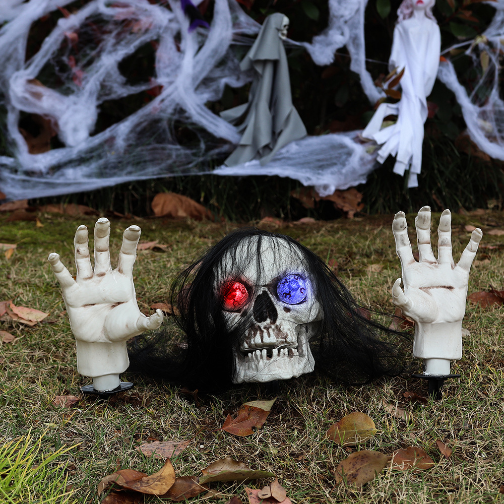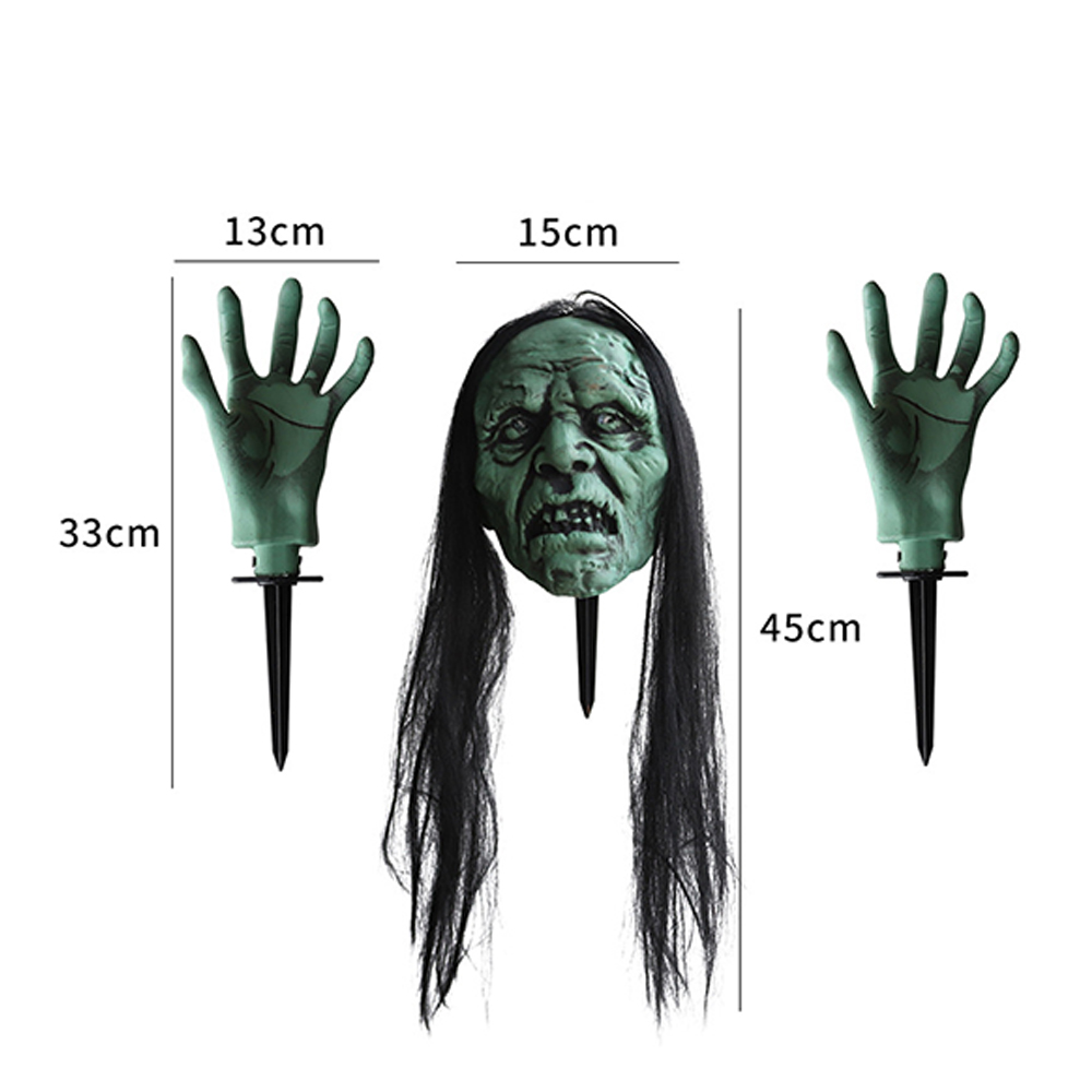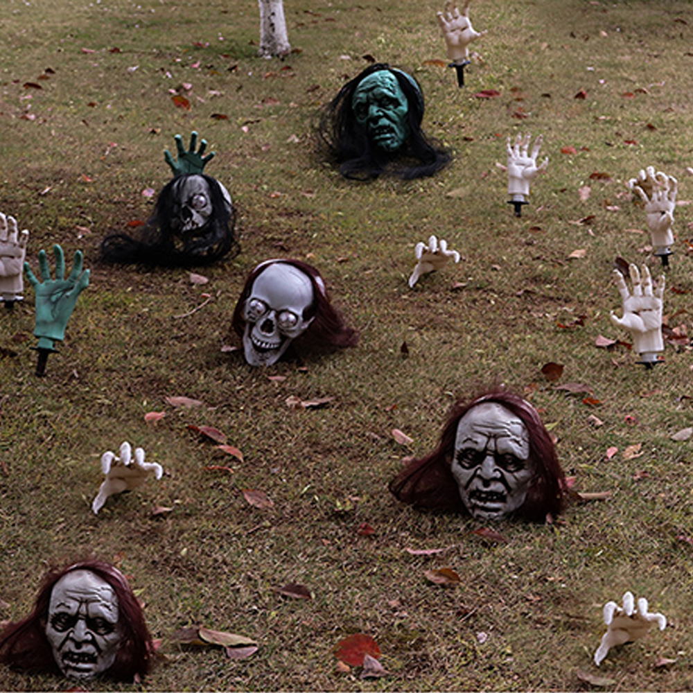 Easy to install, just insert the bottom of the arm into the ground and place the skull to present a realistic zombie scene.