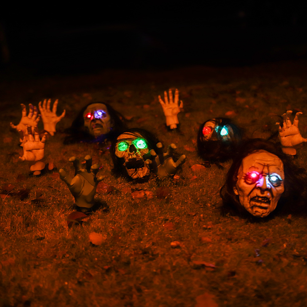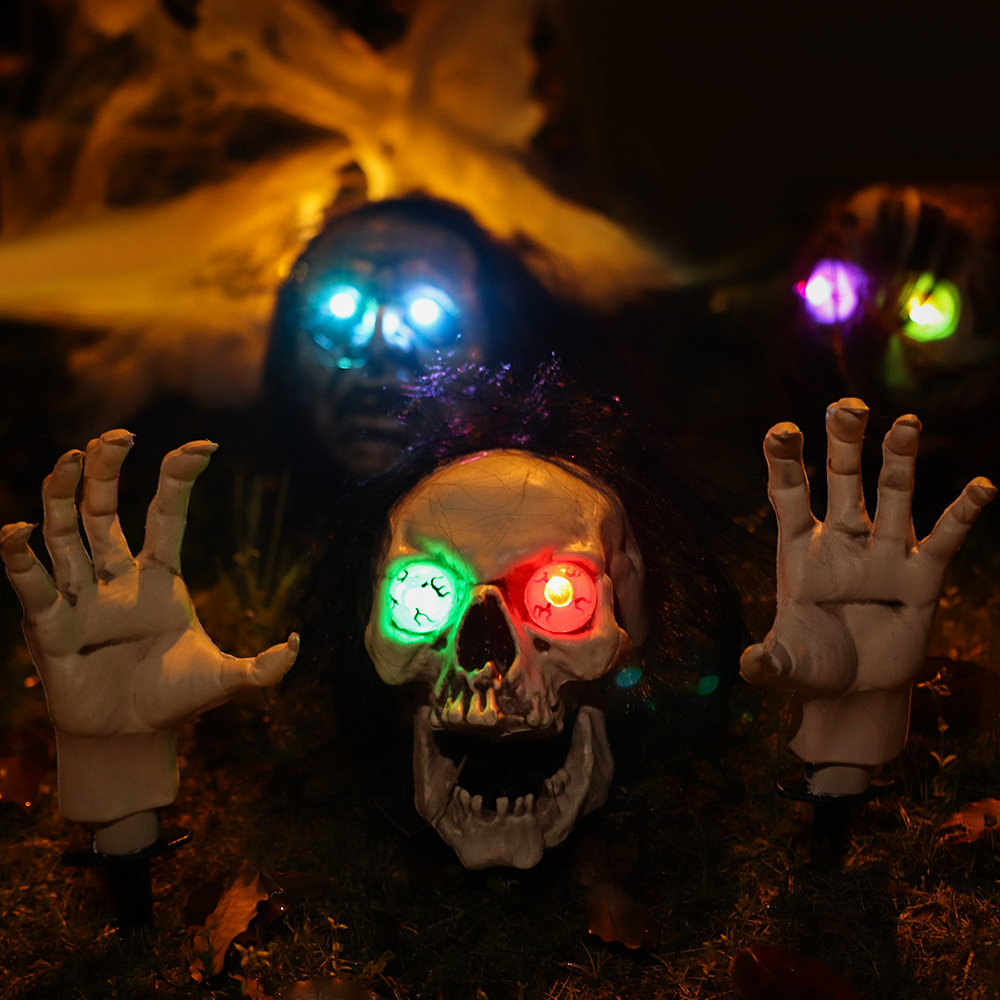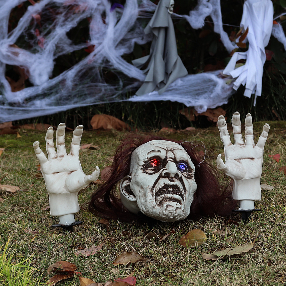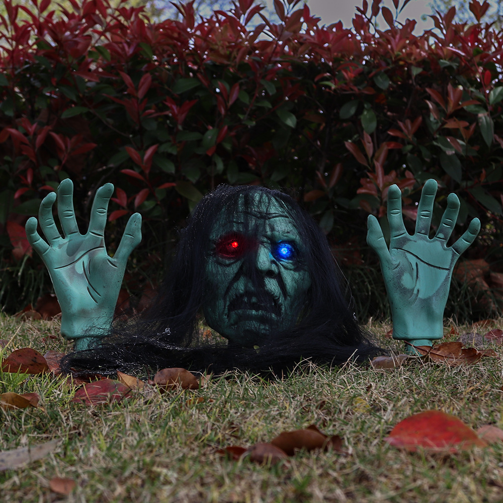 Easy to install, just insert the bottom of the arm into the ground and place the skull to present a realistic zombie scene.