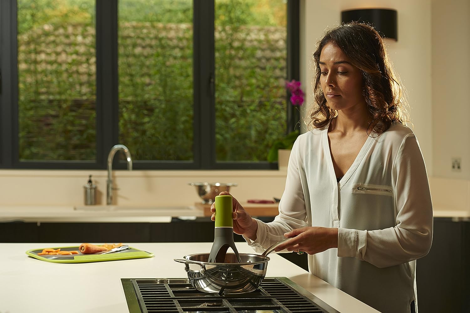 Automatic stirrer with unique and innovative design - Saves time when you are cooking - There's no need to spend time manually stirring your soups, sauces, porridge, gravy, and more, the stirrer will do the job for you