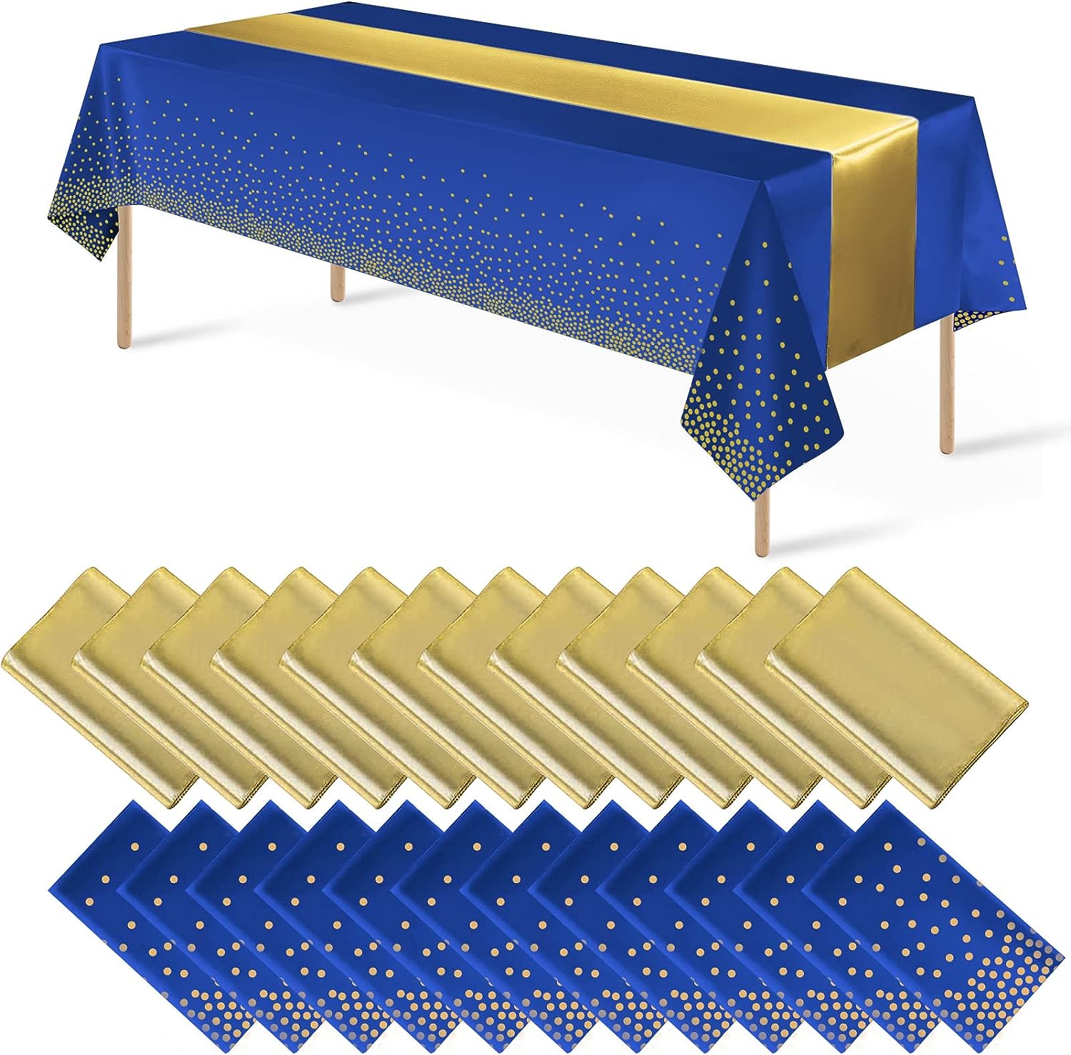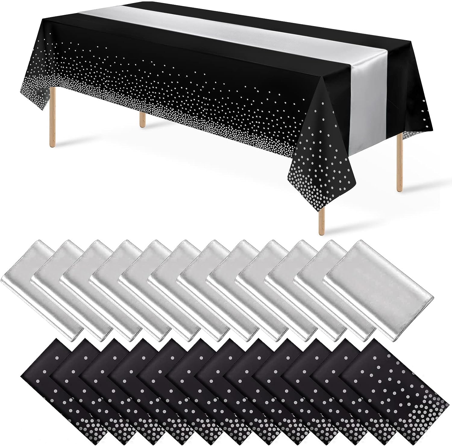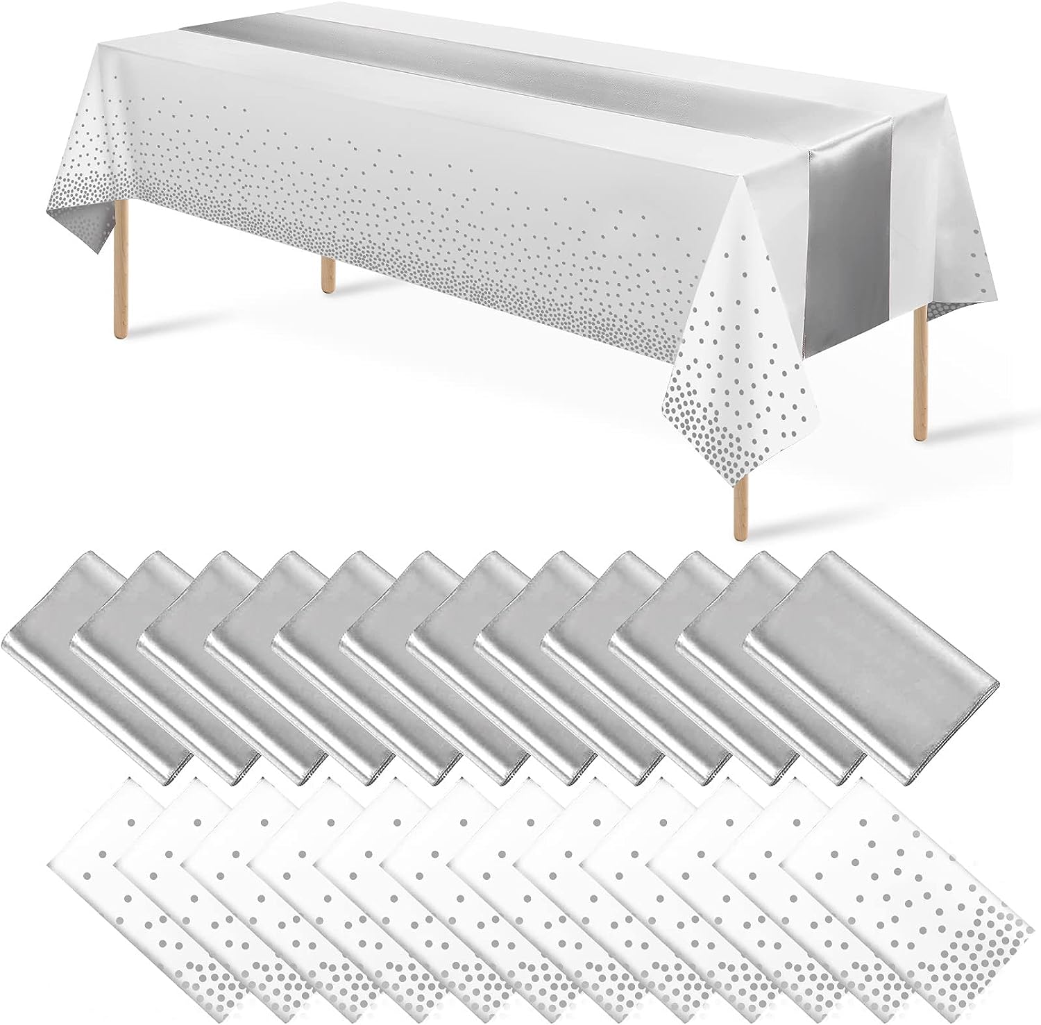24Pack Disposable Plastic Tablecloths and Satin Table Runner Set for Wedding Birthday Baby Shower Anniversary Christmas New Year Party Decorations