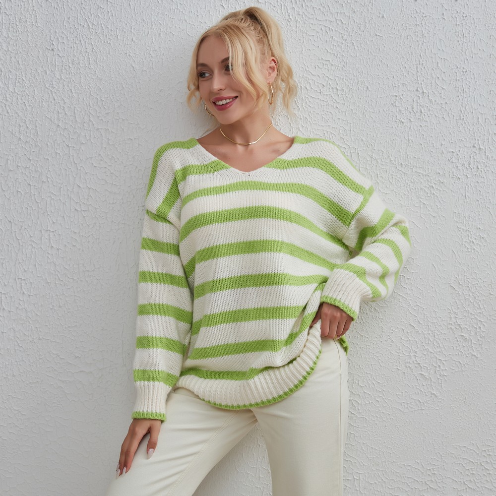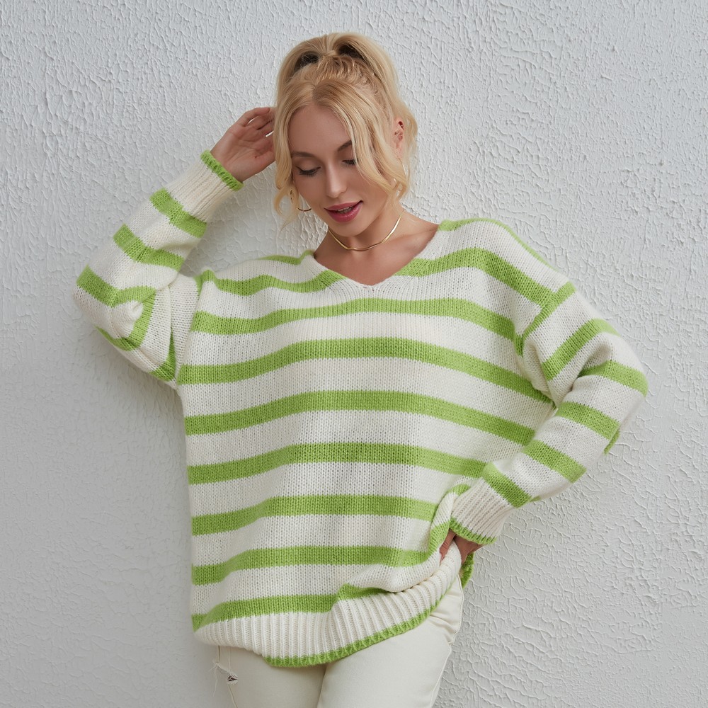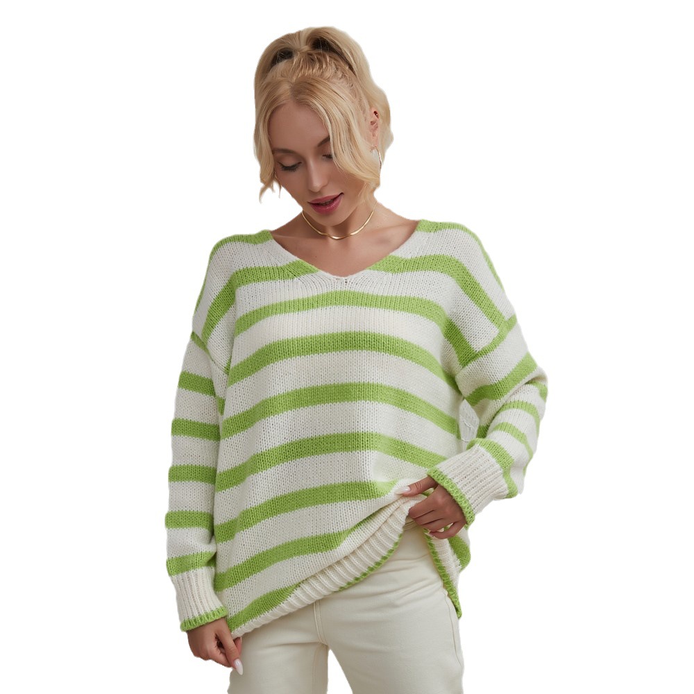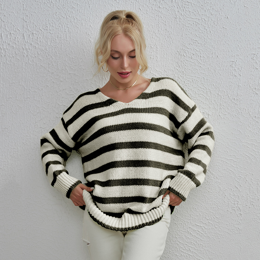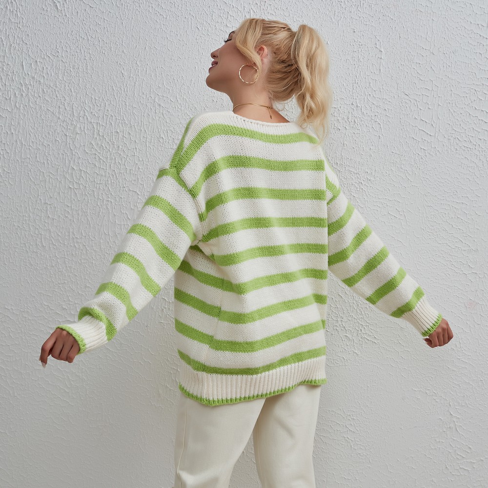 Ladies Fashion Knitwear Striped Loose Casual Sweater