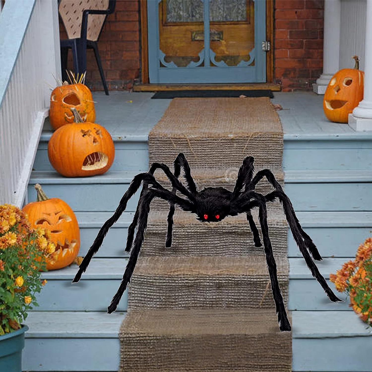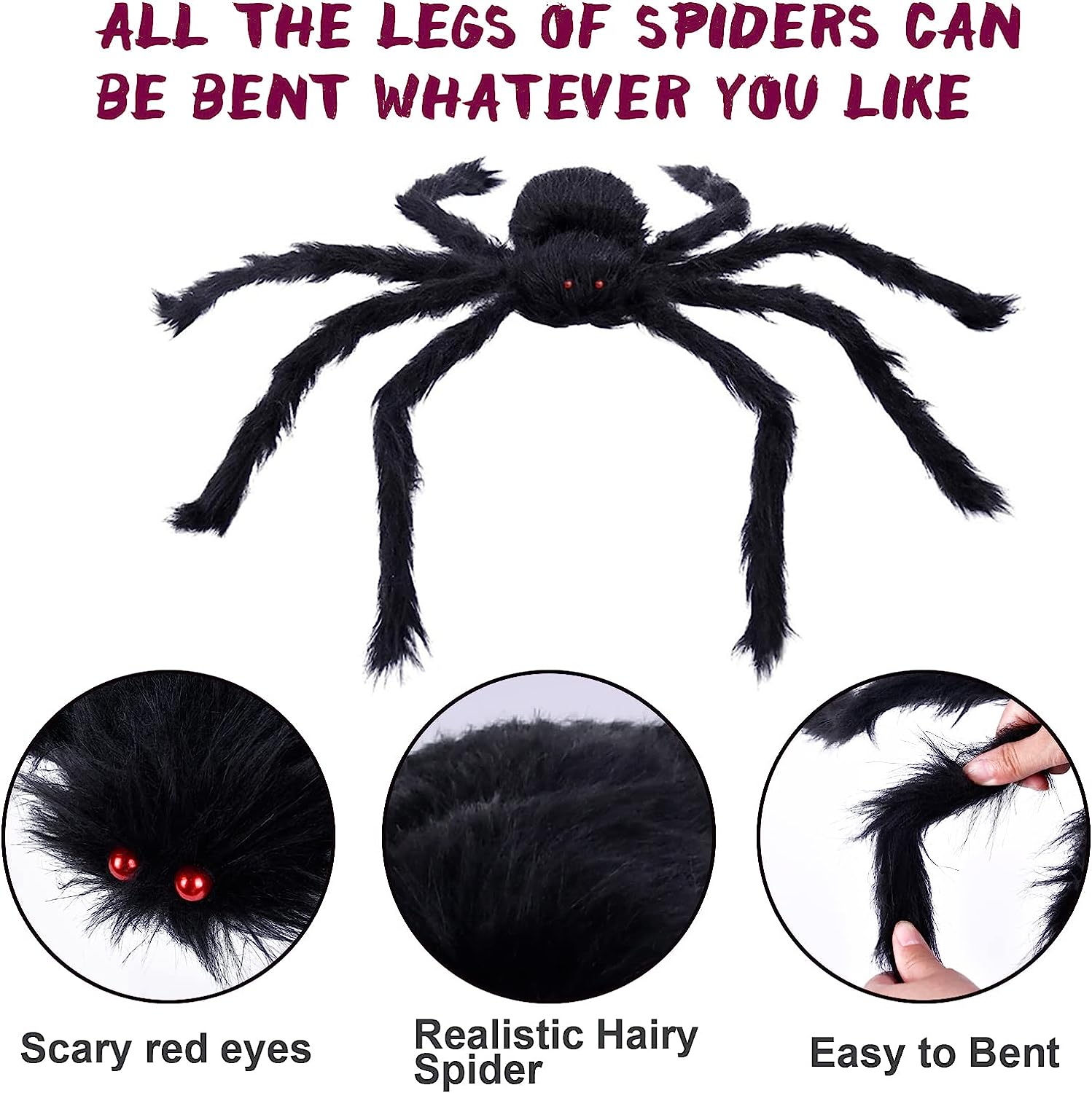 【Scary and Realistic Spider Decor】Realistic fake spiders have black fluff, furry body feels and looks more real. The creepy red eyes allow you to still see the scary spider in the dark. Make your house the focal point of the Halloween street and get the