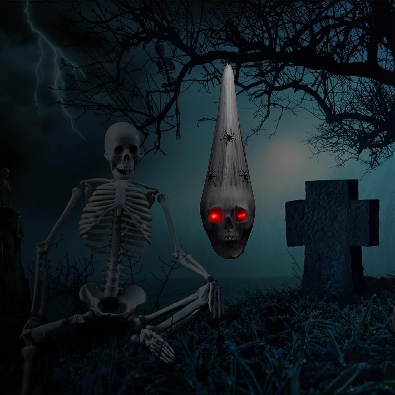 Scary Halloween Skull: The realistic LED Spider SKULL is for Halloween decor indoor outdoor. An ideal indoor outdoor Halloween yard decoration,scary hanging skeleton decoration.