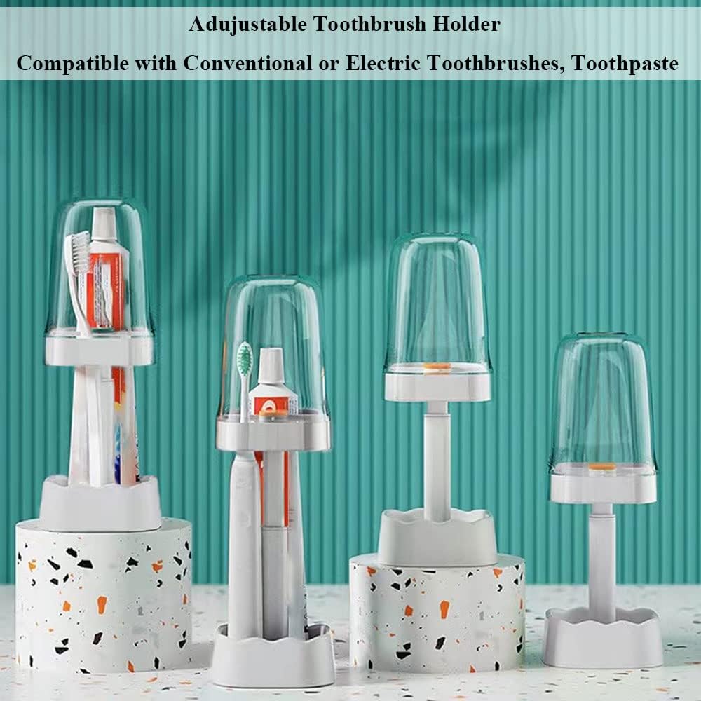 1pc Height Adjustable Toothbrush Holder with Lid/Cup, Bathroom Electric Toothbrush Holder, Compatible with Conventional or Electric Toothbrush