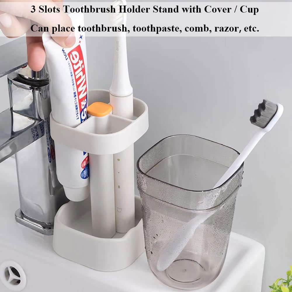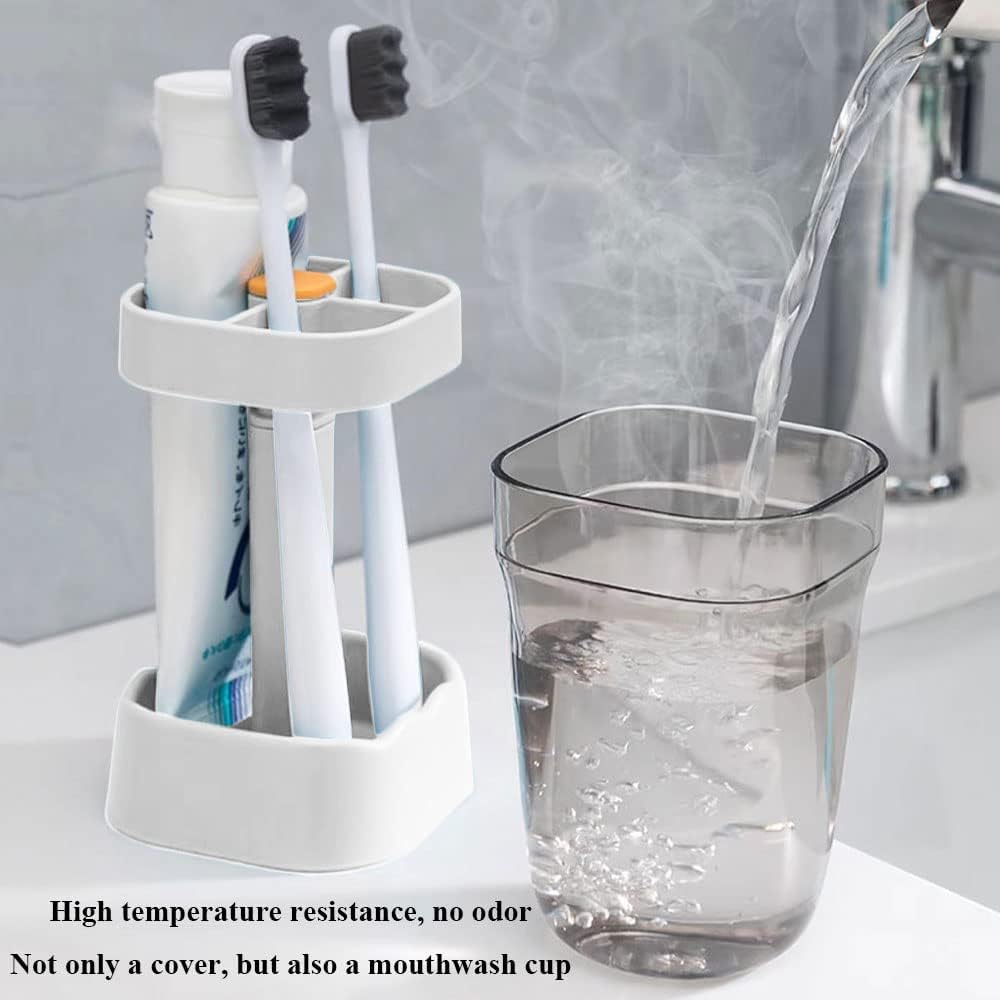✔ 2 Slot Toothbrush and Toothpaste Holder with Lid: Brush your teeth with the top mouthwash cup, cover the cup back to the top when you are done, it can serve as a protection toothbrush head from dust and avoid falling on the toothbrush. Keep your toothbrush clean, dry and sanitized while washing your hands or spraying detergent to avoid toothbrush dropping.