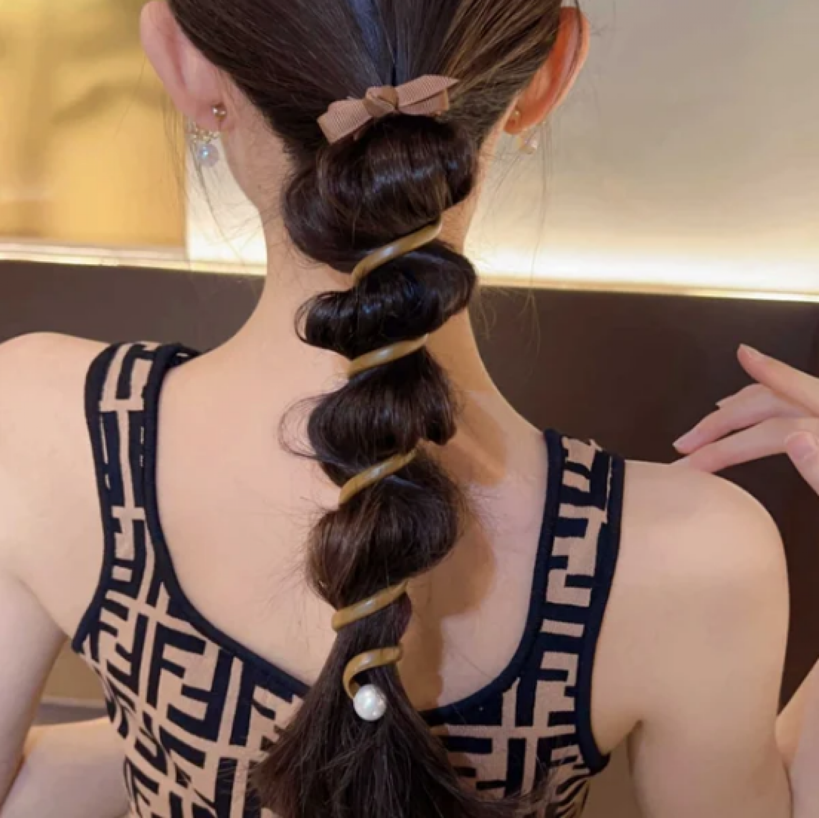 The spiral design of the telephone-type hair group allows you to stretch the ""pressure"" on the surface of the hair with elastic to control the hair while styling the elastic hair tie.