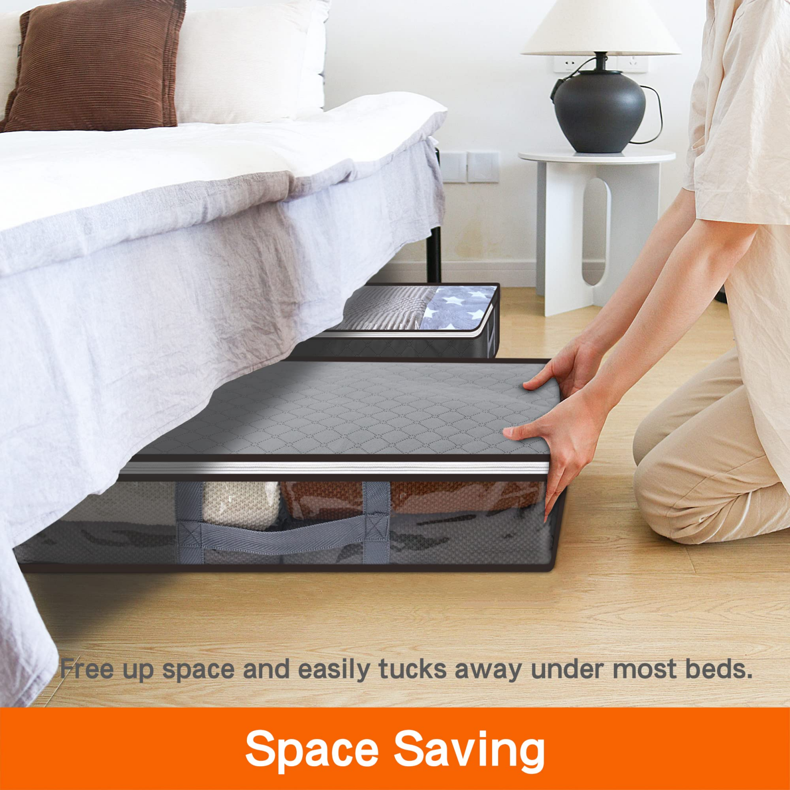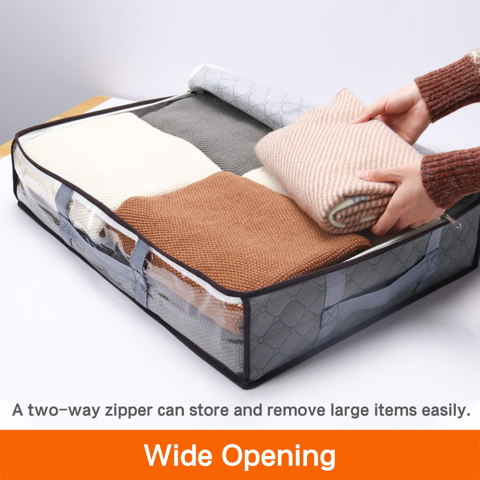 【Reinforced handles】In addition to the traditional handles on both sides, our storage bags also have sturdy sewn handles on the front. All three handles are reinforced with H-type to strengthen bearing capacity and not easy to tear. It is convenient to pull the storage bags under the bed or in the closet, both hands or one hand can better meet your needs.