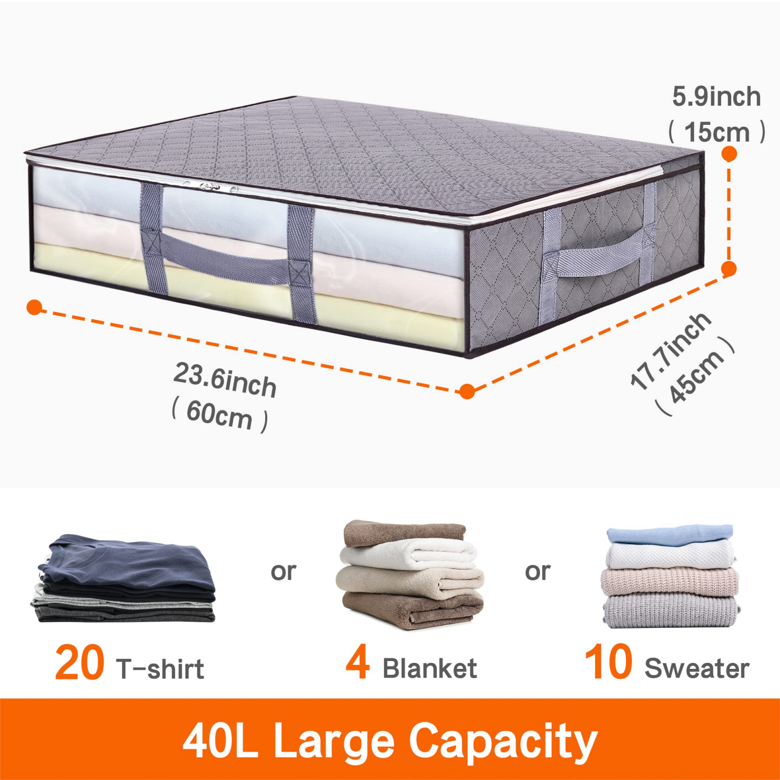 【Large Capacity】: Each of these storage bins is 60 x 45 x 15cm but with a large capacity of 40L. It can easily hold more than 15 pieces of clothing. A good choice for organizing comforters, blankets, pillows, clothes, shoes and toys.