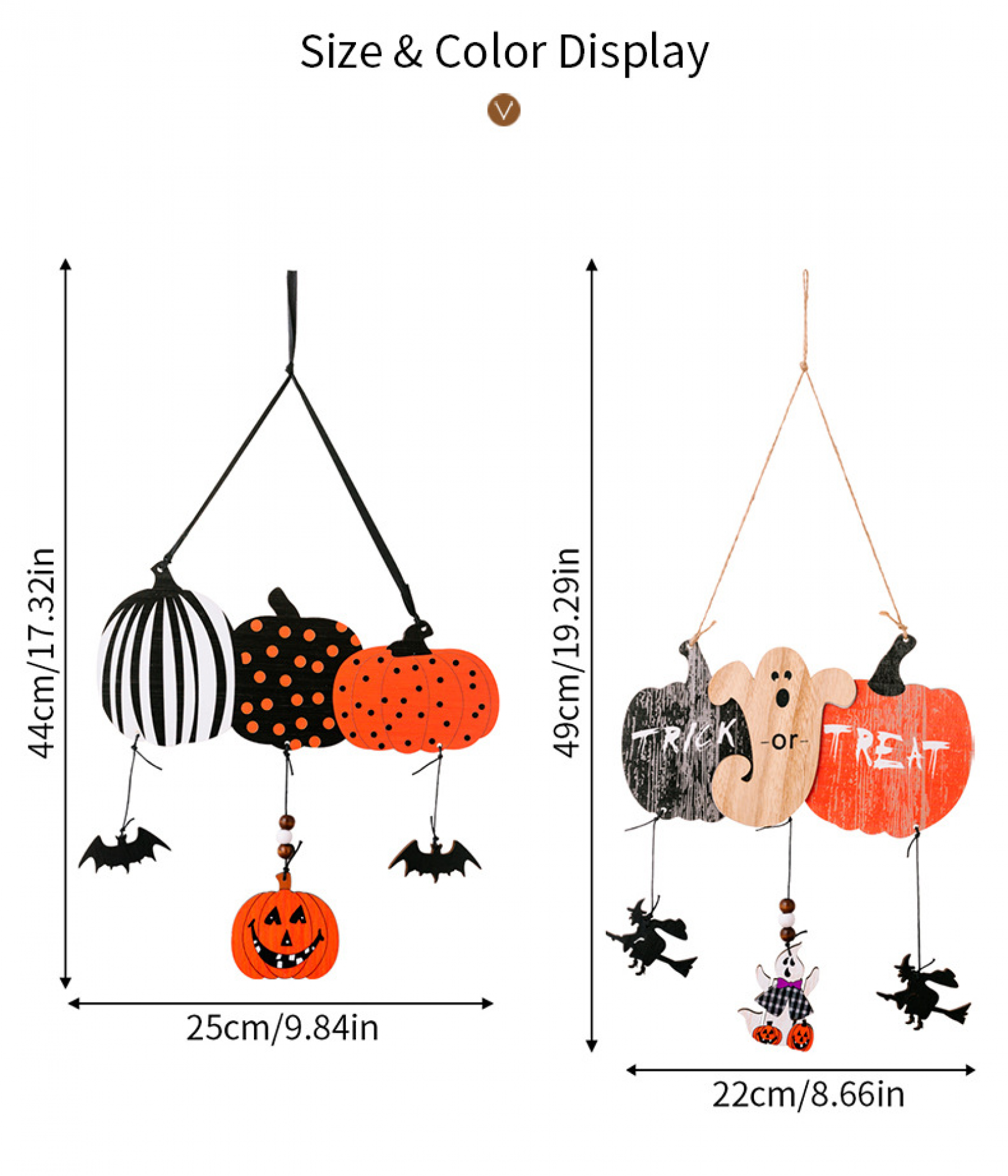 2Pcs Halloween Decorations - Wooden Pumpkin Hanging Ornaments, Atmosphere Setting, Ghost and Bat Party Decor