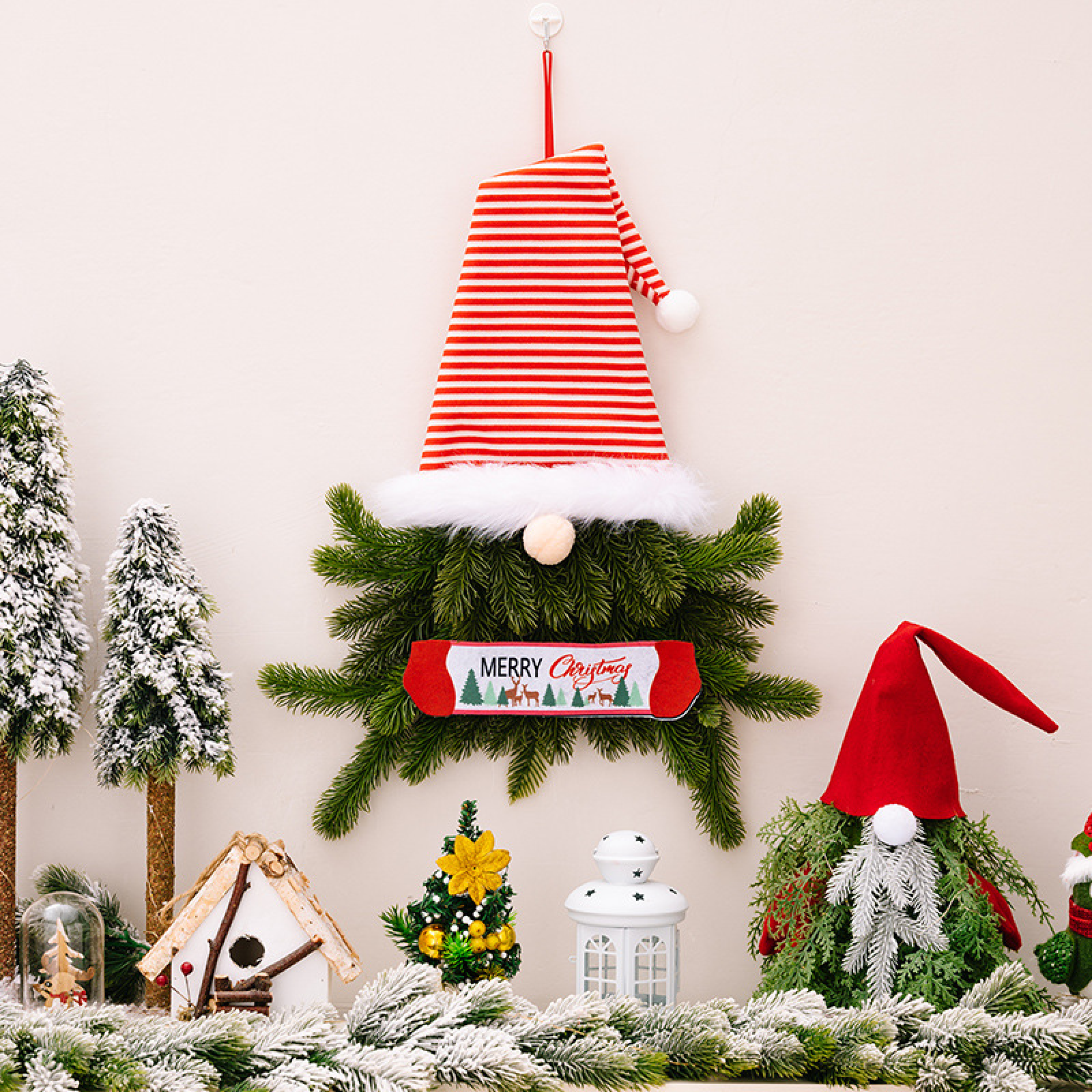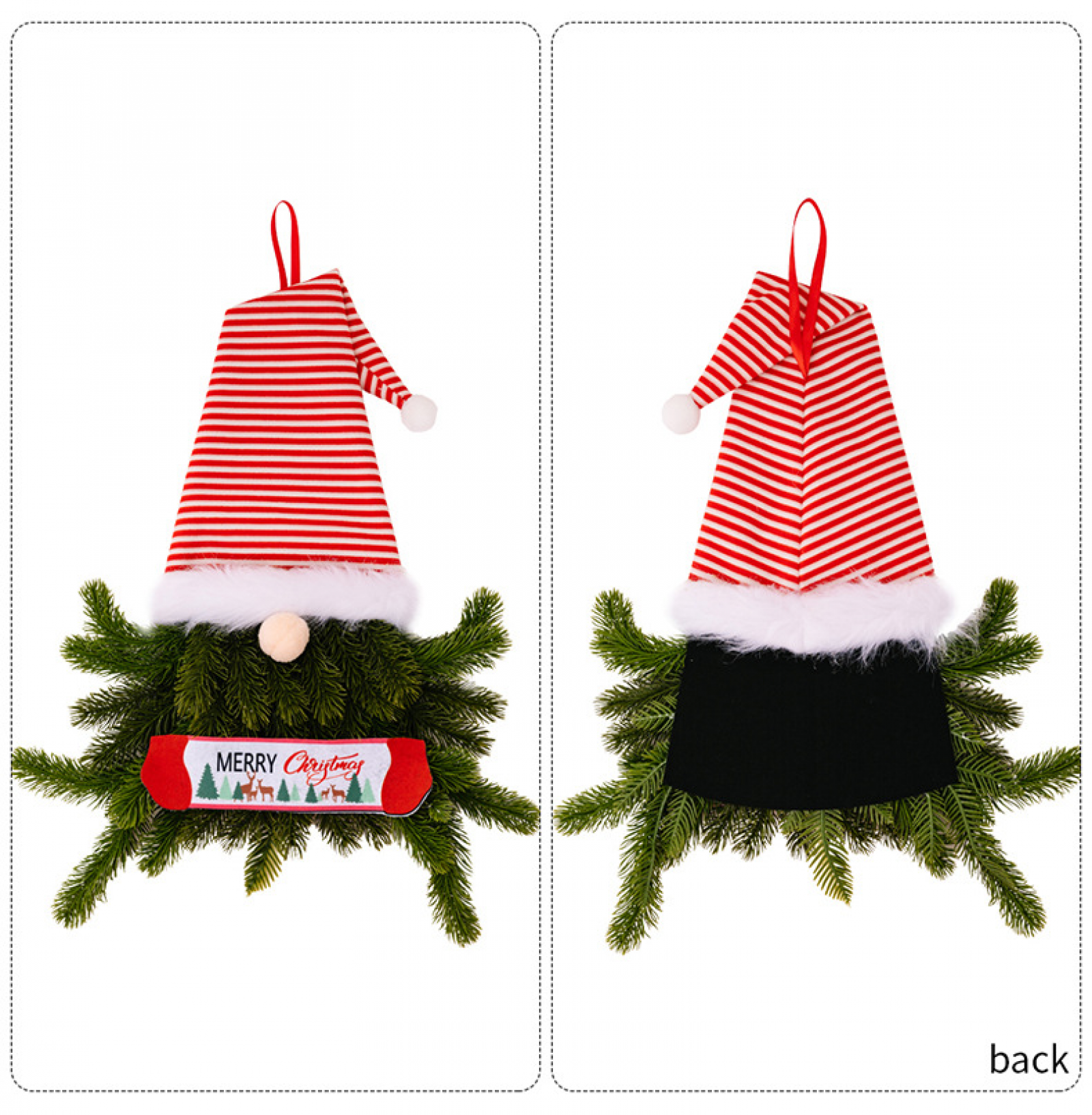 Versatile Decorative Options: Use the no-face doll tree ornaments to embellish your Christmas tree branches, hang the Christmas elf floral wreath on your front door or wall, and place the holiday hanging ornament in any desired location to create