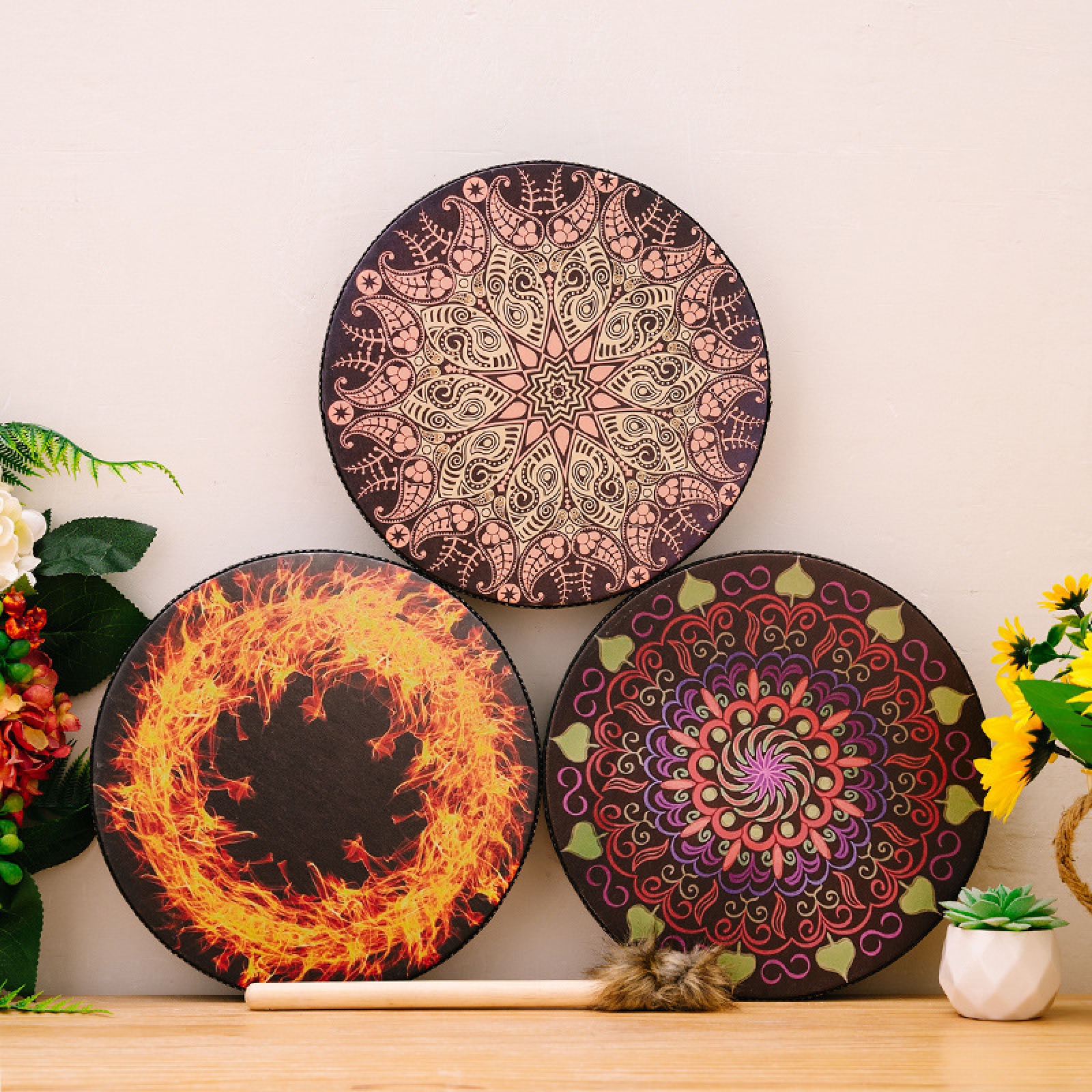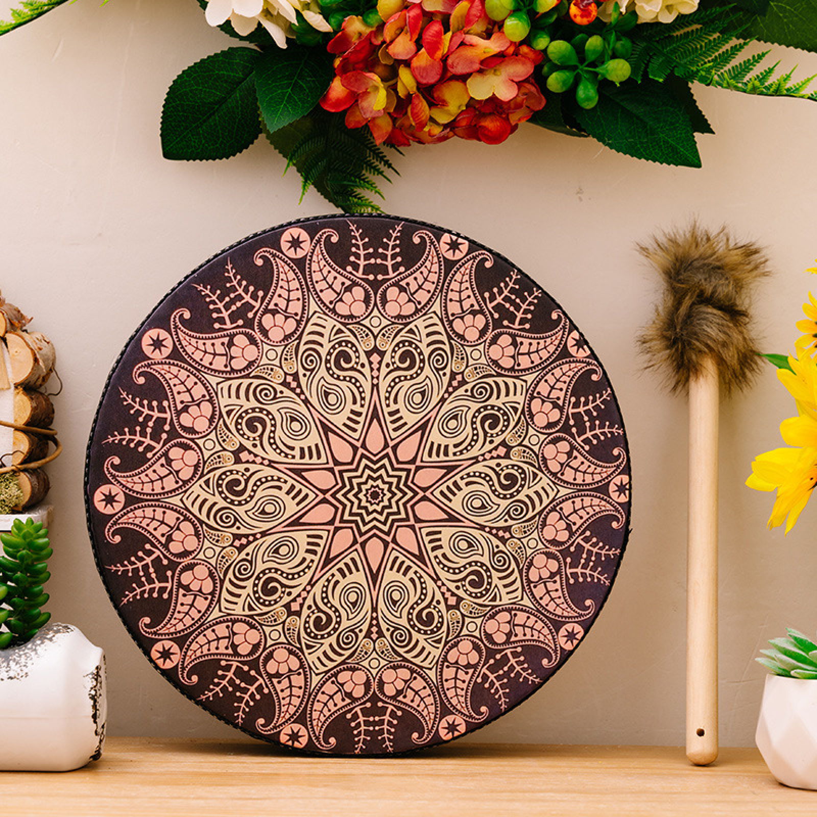 Bohemian Drum Festival Decorations - Percussion Instrument Drum with Mallet, Festive Atmosphere, Beat the Drum