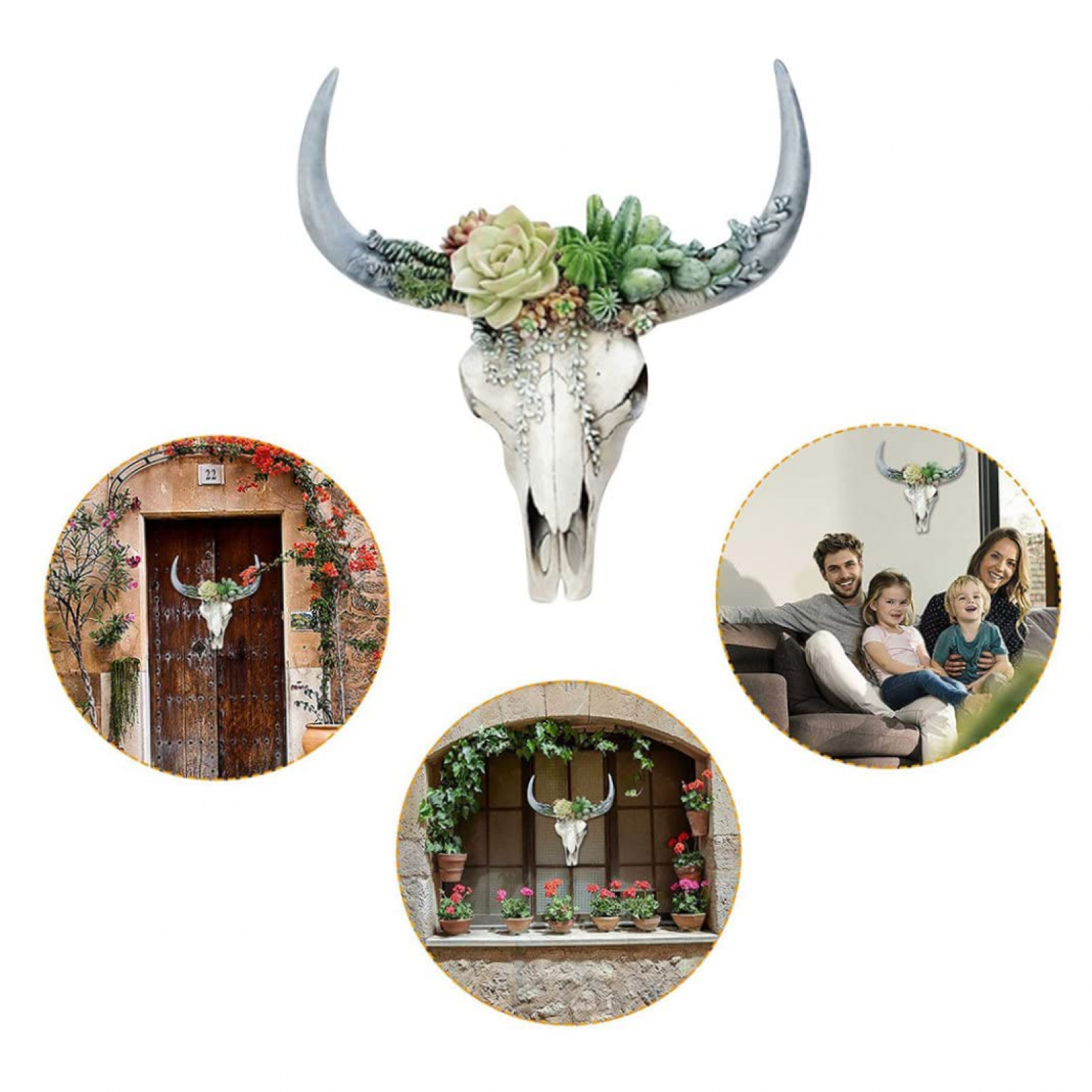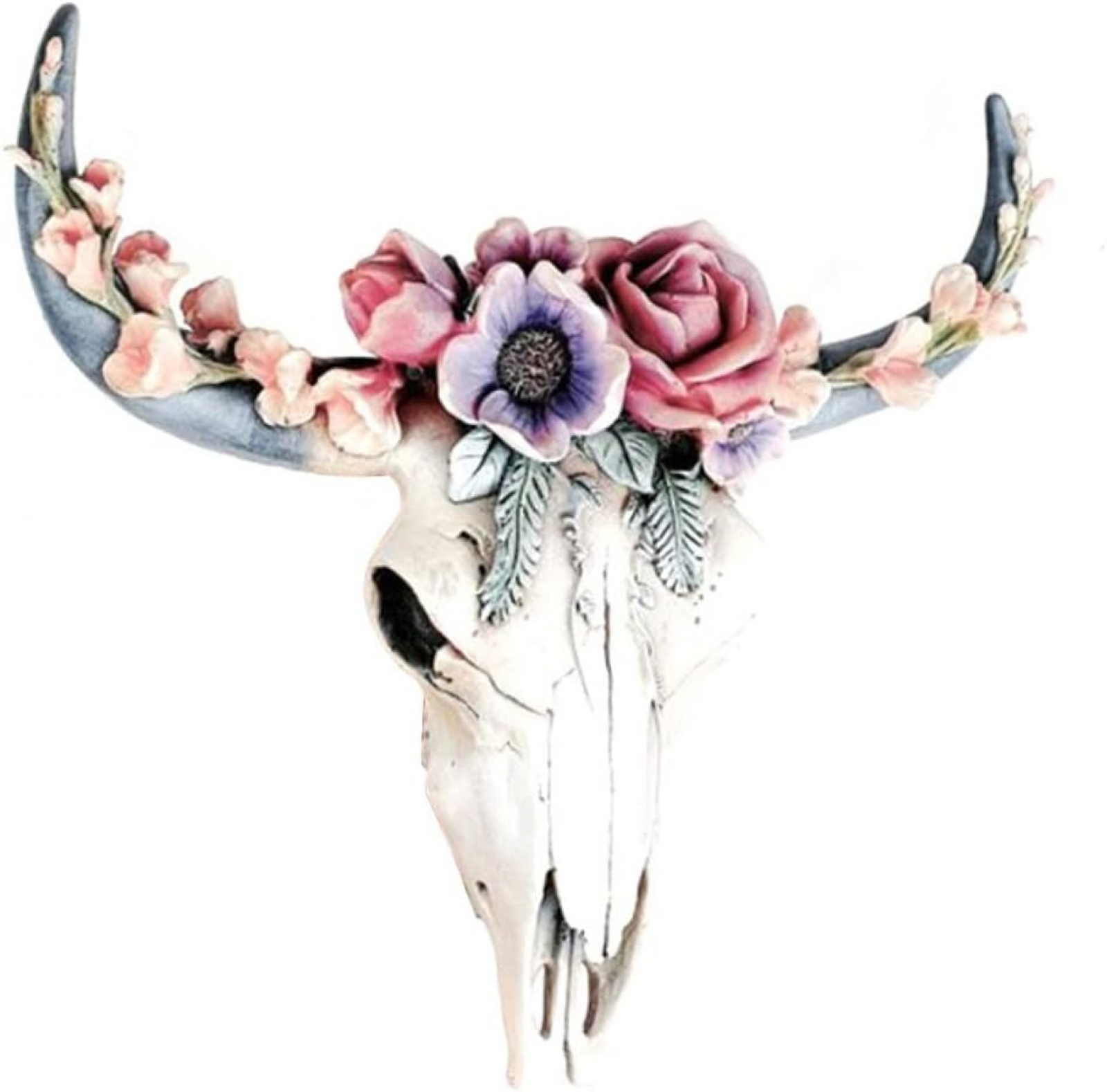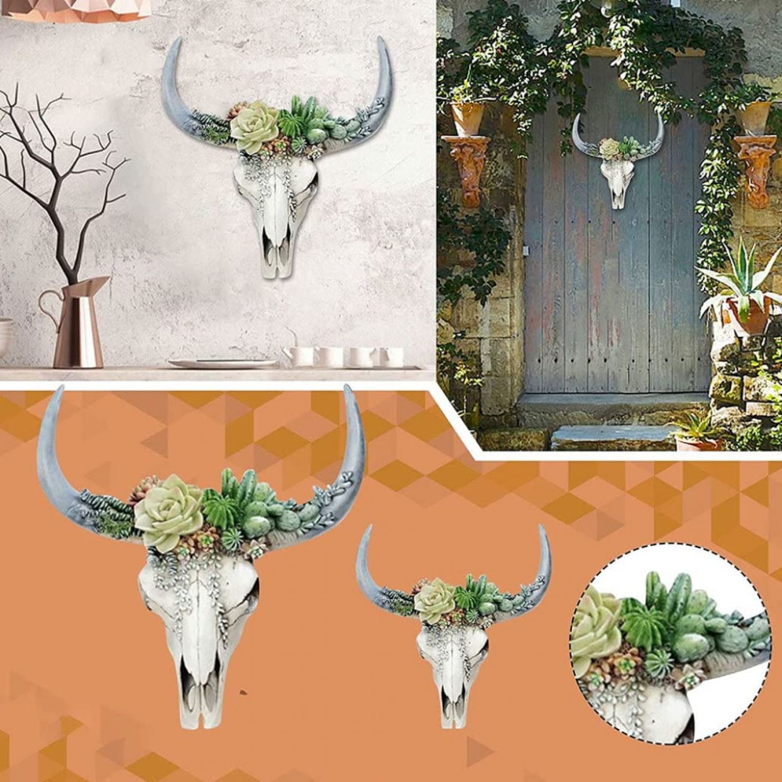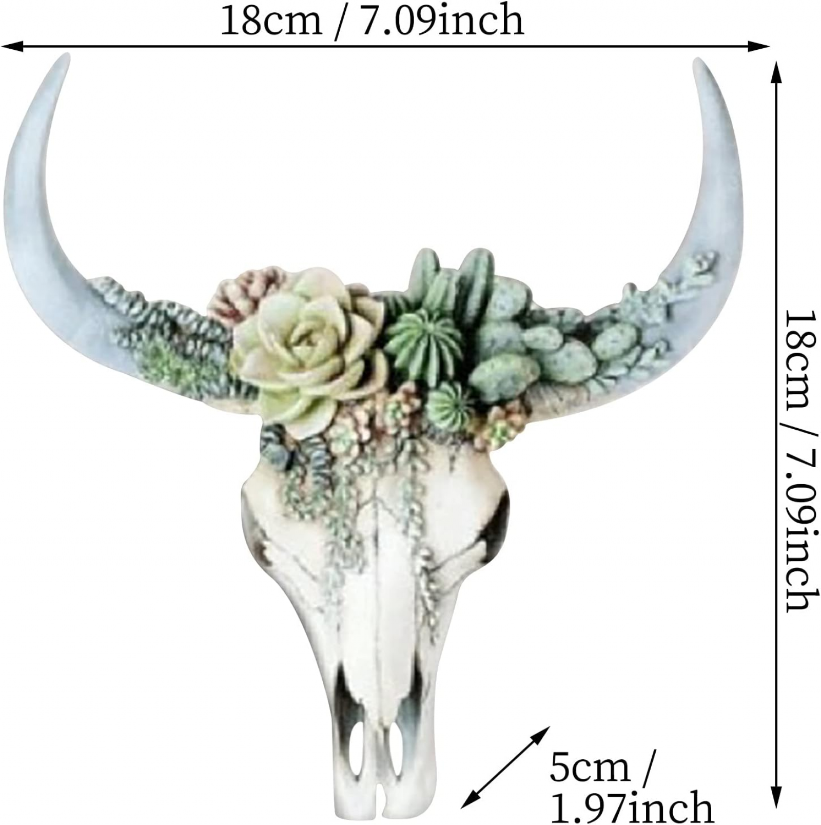 Wall Ornament with Artificial Cow Skull Resin Hanging Ornament for Bedroom, Bathroom, Office, Rustic Wall Decor and Xmas Gifts