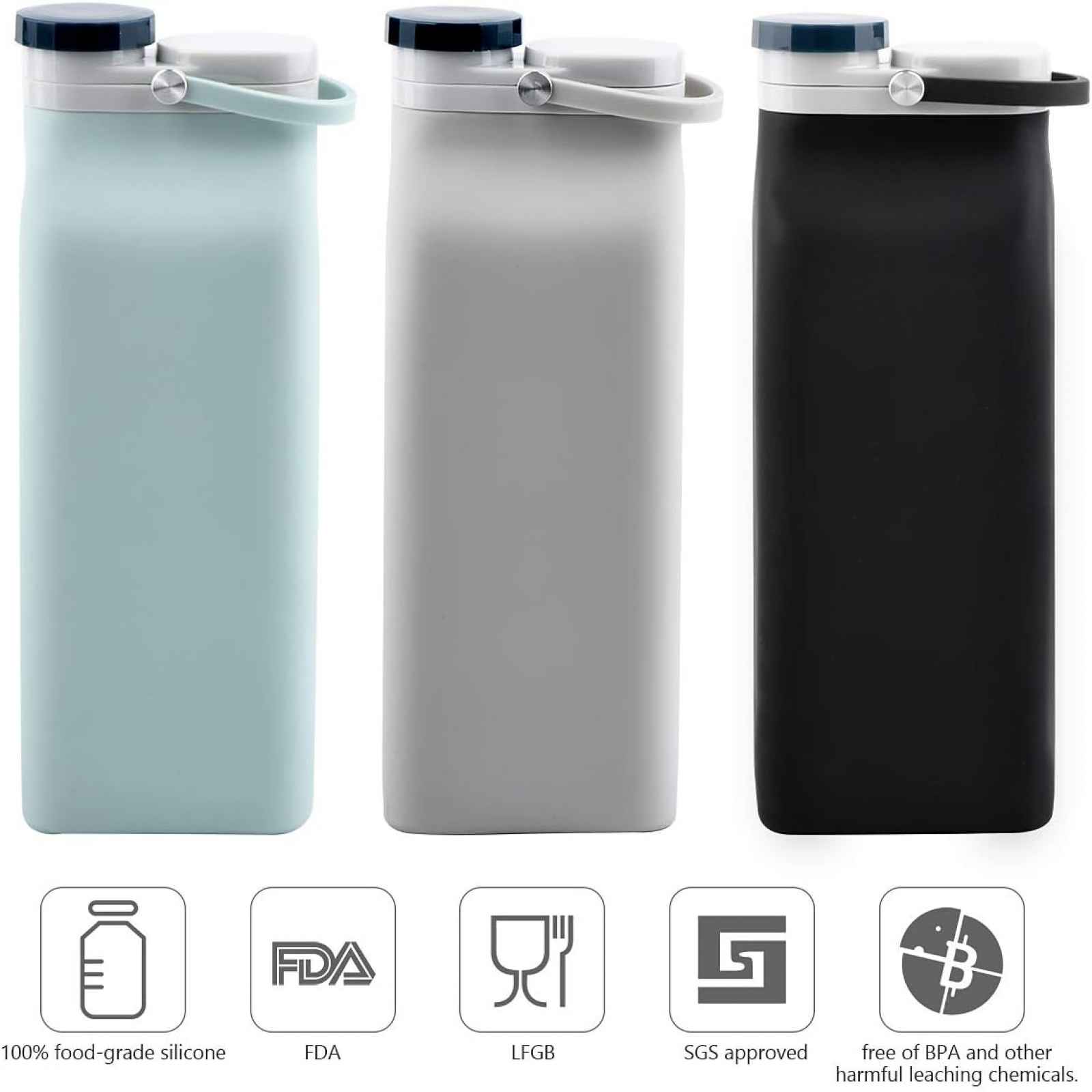 SAFE&ECO-FRIENDLY MATERIALS: Water Bottles are made of 100% food-grade silicone.
