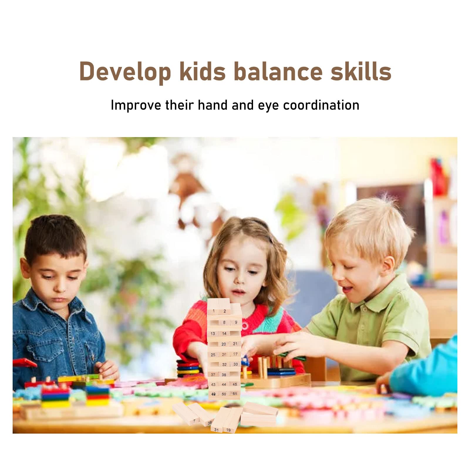 Stacking Fun Educational Wooden Toy - 54 Pieces of Number Stacking Blocks Desktop Game for Early Learning