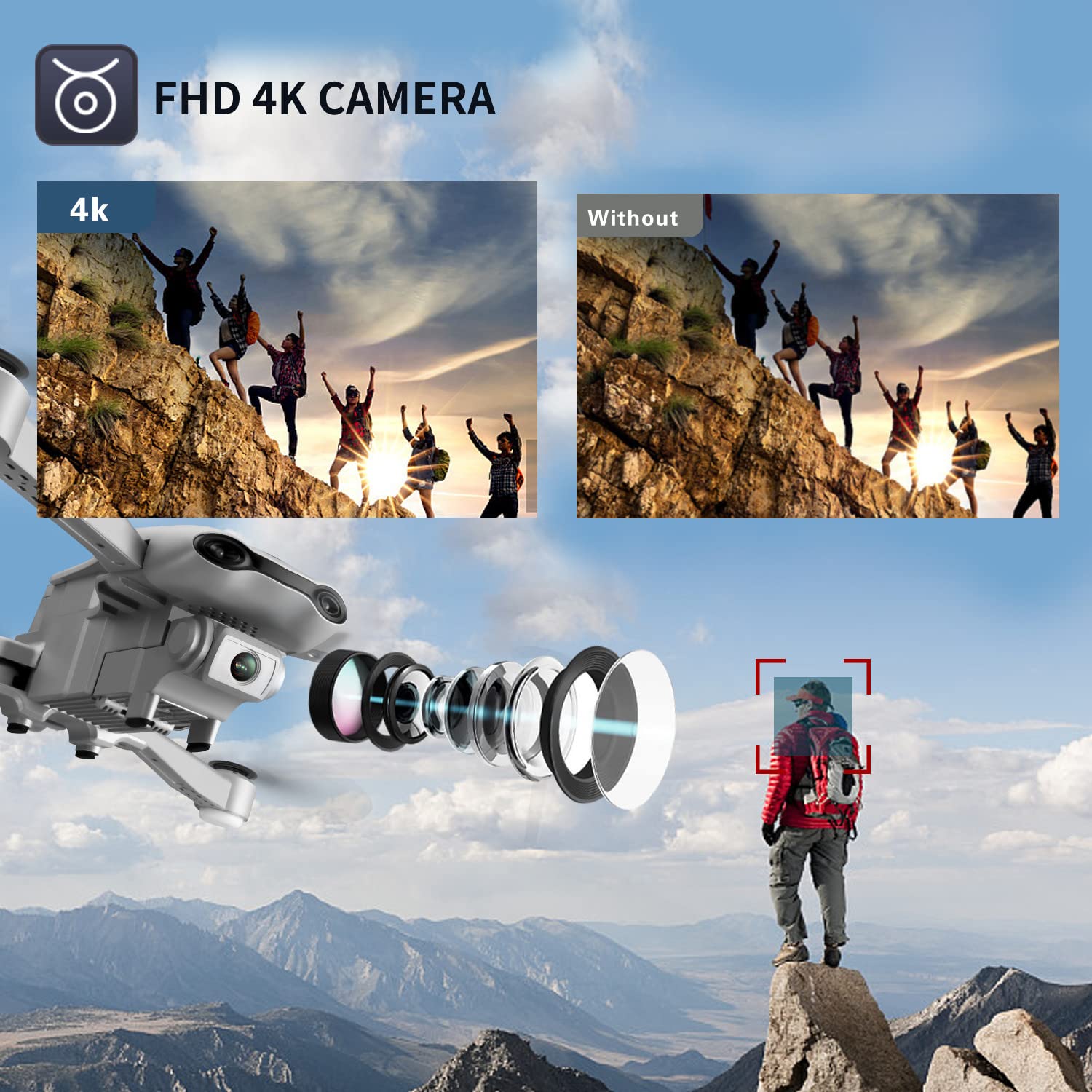GPS Auto Return & Follow Me:Equipped with GPS positioning, the drone can automatically follow the pilots. When it is losing signal or power, or you press one key return, it will and fly back to take-off point automatically. Beside, you will have a easy start with functions like altitude hold, headless mode. Get worry free flight and have better shots!